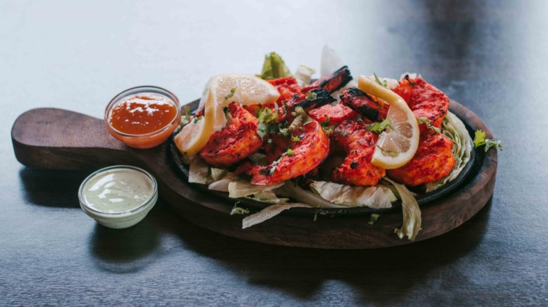 gegrillte Riesengarnelen mit Joghurt und Tandoori-Gewürzen