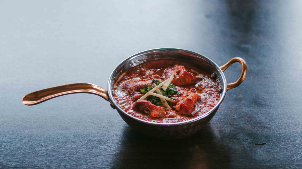 (Butter Chicken)gebratene Pouletstücke mit Tandoor, Tomatensauce, Rahm und Butter